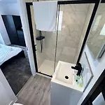 Banyo odasında ayrı tuvalet, banyo küveti, duş sunulur.